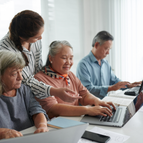 Training for smartphones, tablets, online communication, and telehealth platforms.